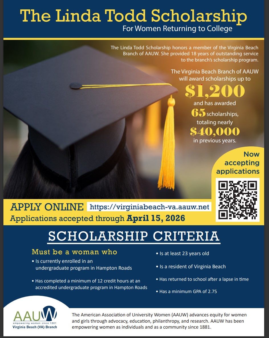 Welcome! Learn about AAUW National HERE. Keep scrolling/clicking on these pages to learn about AAUW Virginia Beach Branch.